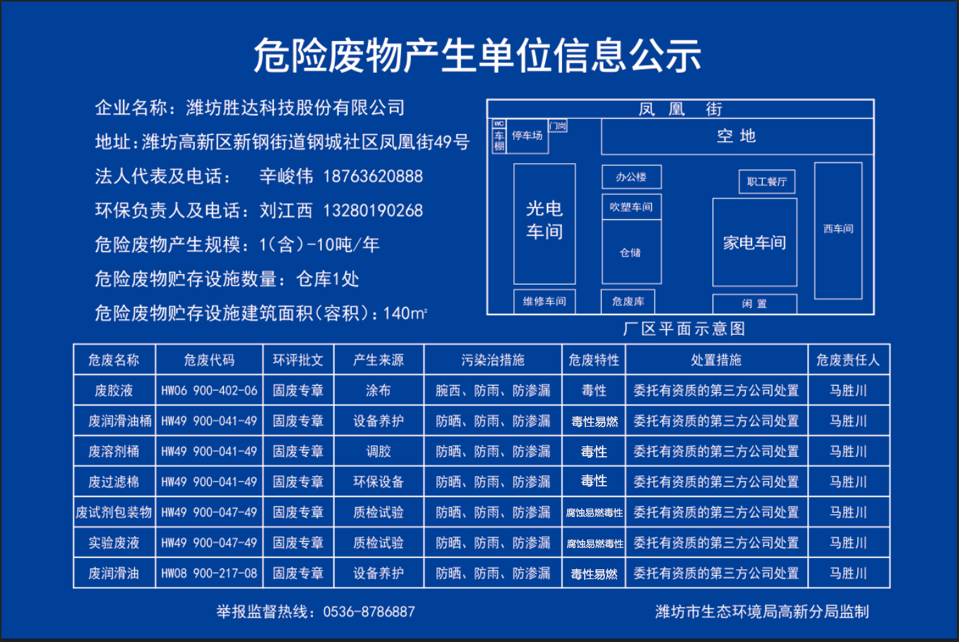濰坊勝達科技股份有限公司危險廢物產(chǎn)生單位信息公示
